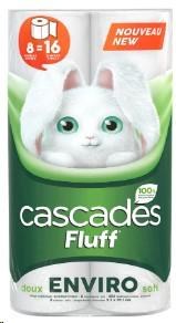 Cascades Fluff Enviro Soft Bathroom Tissue 2-Ply 242 Sheets 8=16 Rolls (6) (77990)