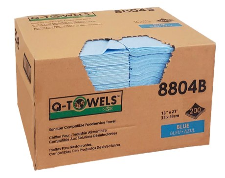 The Q-Towels™ are of high-quality that make cleaning reliable, cost effective and promote a healthy environment by reducing risks associated with foodborne illness outbreaks. Q-Towels™ are compatible with quaternary sanitizers & disinfectants. Reduce cross-contamination and foodborne illnesses by segregating different colors for different areas when back-of-the-house or front-of-the-house. They can be reused, which reduces the need for single-use disposable towels, bringing sustainability to your hygienic practices. Q-Towels™ come in an easy to use one-at-a-time functional/ storage friendly box for a convenient experience.